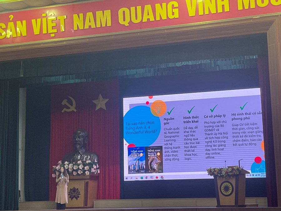 Hội thảo được kết nối tới các đại diện tác giả các bộ sách giáo khoa Tiếng Anh lớp 4. Tại hội thảo, tác giả các bộ sách giới thiệu tổng quan công tác biên soạn, xuất bản, cấu trúc bài học, hướng dẫn sử dụng sách, nội dung các môn học, những điểm mới của sách giáo khoa tiếng Anh lớp 4. Hội thảo giúp các thầy cô giáo tiếp cận, nắm bắt một cách đầy đủ, khoa học và hiệu quả cao những ưu điểm nổi bật của từng bộ sách, từ đó, làm căn cứ để các nhà trường nghiên cứu, thảo luận, lựa chọn những bản sách giáo khoa Tiếng Anh lớp 4 phù hợp đảm bảo tiêu chí do UBND thành phố ban hành.