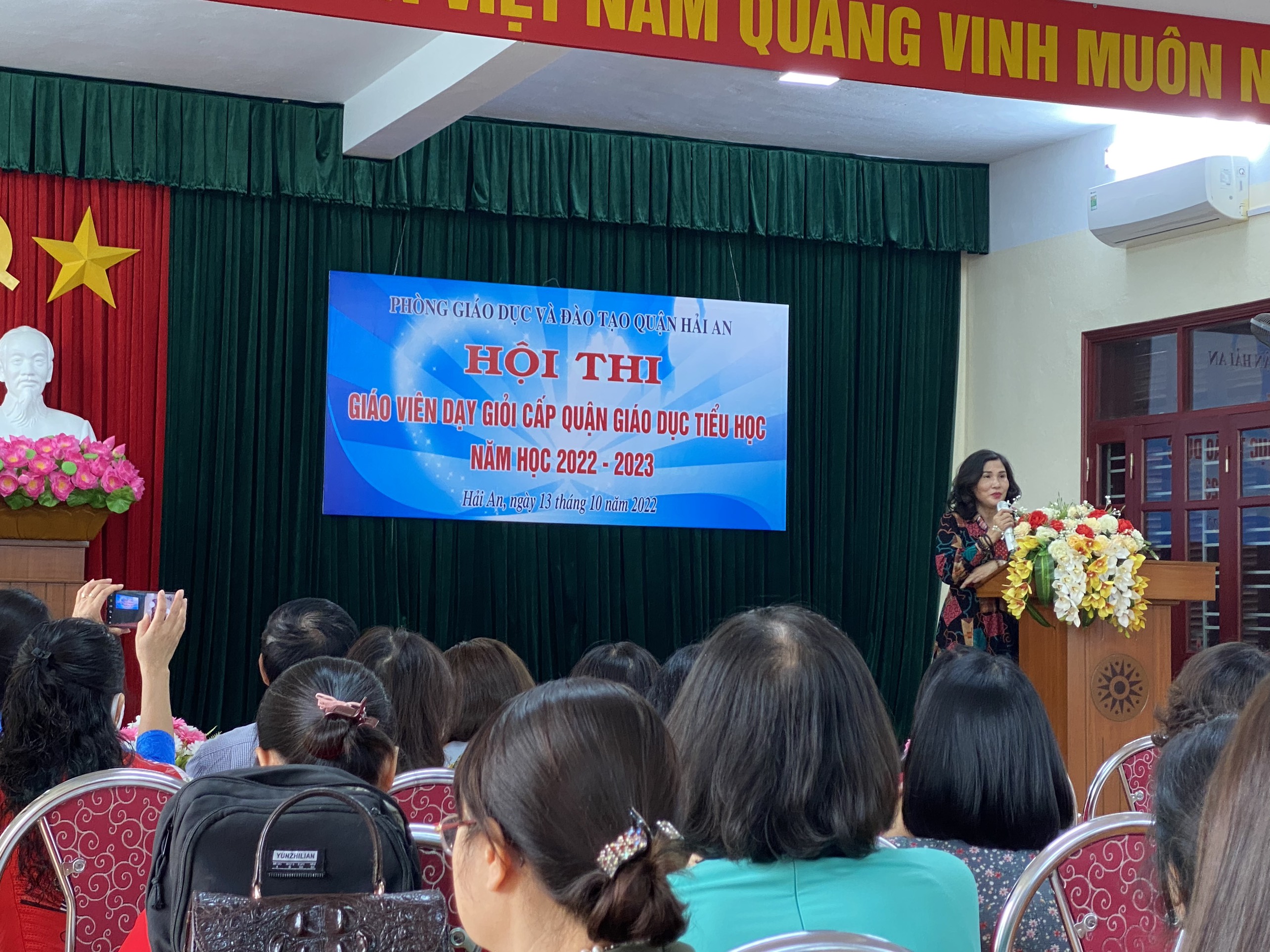 Thực hiện theo Thông tư số 22/2019/TT-BGDĐT ngày 20/12/2019 của Bộ GD&ĐT ban hành Quy định về Hội thi giáo viên dạy giỏi cơ sở giáo dục mầm non; giáo viên dạy giỏi, giáo viên chủ nhiệm lớp giỏi cơ sở giáo dục phổ thông; Kế hoạch số 106/KH-SGDĐT ngày 15/9/2022 của Sở Giáo dục và Đào tạo về Hội thi giáo viên dạy giỏi cấp thành phố năm học 2022-2023; Thông báo số 289/TB-SGDĐT ngày 19/9/2022 của Sở GD&ĐT về việc điều chỉnh hồ sơ tham dự Hội thi giáo viên dạy giỏi cấp thành phố năm học 2022-2023; Theo kế hoạch số 181/KH-UBND ngày 15/8/2022 của UBND quận Hải An triển khai Kế hoạch công tác Giáo dục - Đào tạo năm học 2022-2023 với mục tiêu nhằm xây dựng và nâng cao chất lượng giảng dạy của đội ngũ giáo viên, tiếp tục phát huy truyền thống dạy tốt - học tốt của ngành Giáo dục và đào tạo, ngày 13/10/2022, tại Trường Tiểu học Đằng Lâm, Phòng giáo dục và Đào tạo Quận Hải An long trọng tổ chức lễ khai mạc “ Hội thi giáo viên dạy giỏi cấp Quận Giáo dục Tiểu học năm học 2022-2023”.