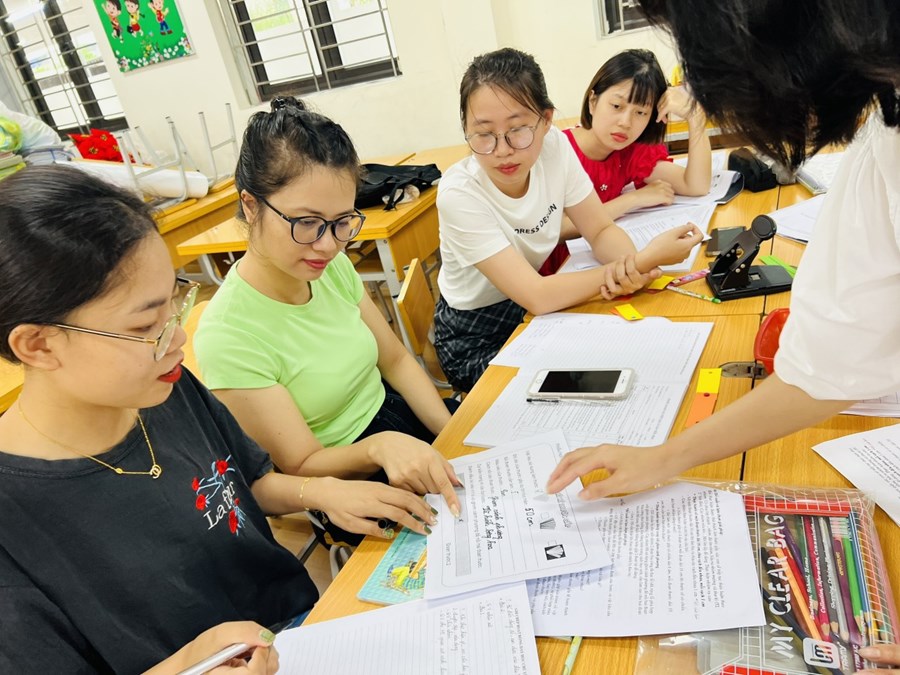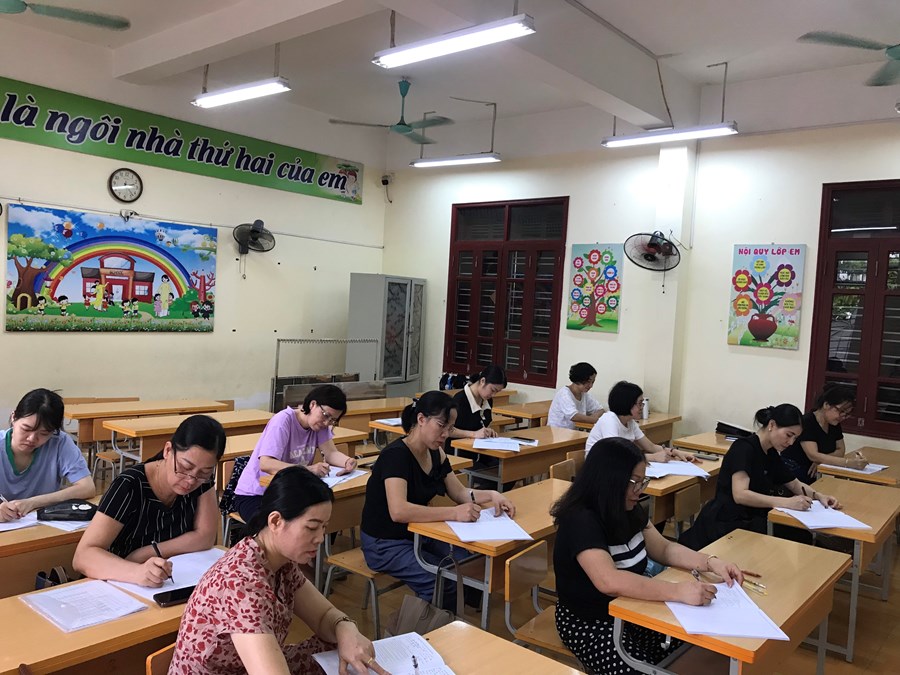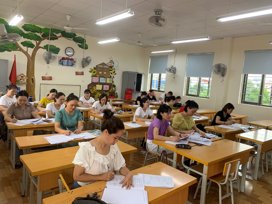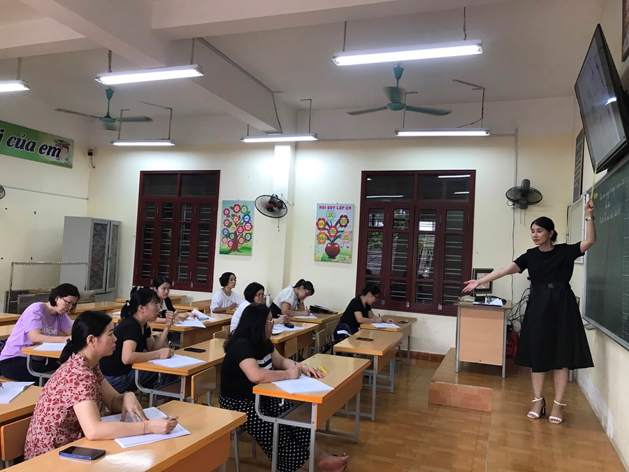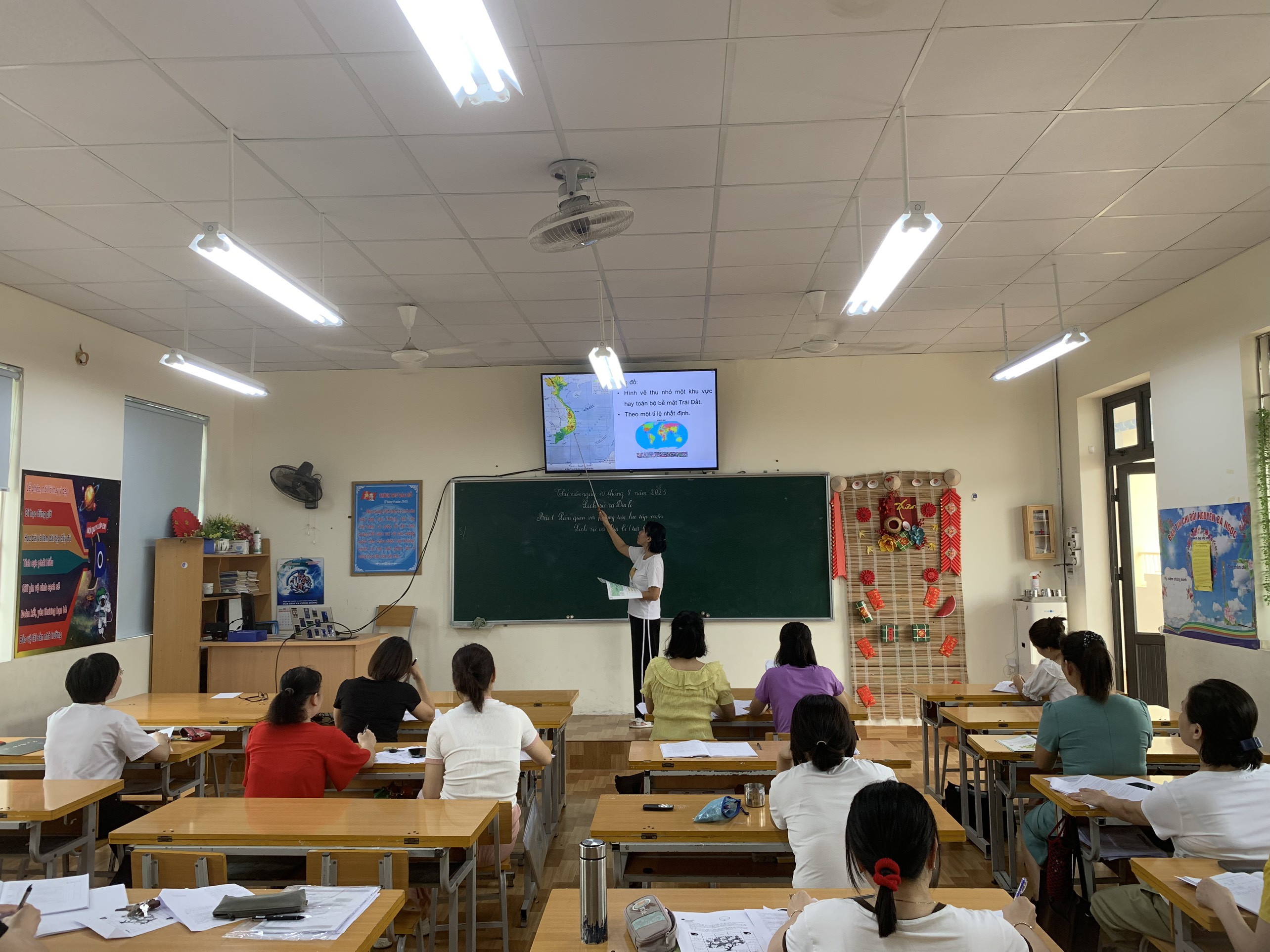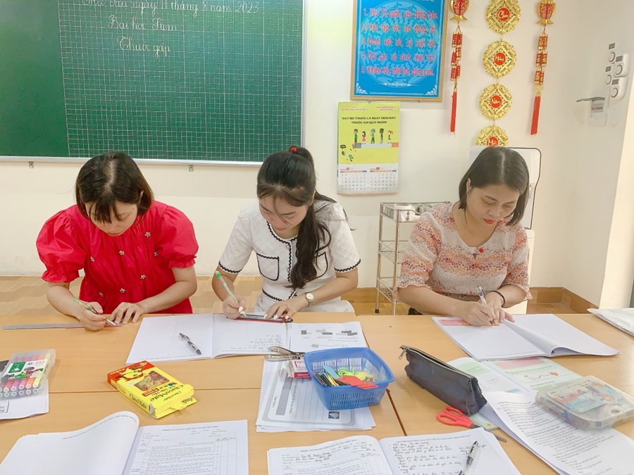 Thực hiện theo phân công nhiệm vụ năm học 2023-2024 và kế hoạch tháng 8, nhà trường tổ chức sinh hoạt chuyên môn cho giáo viên. Các tổ khối lần lượt bàn bạc, thảo luận trong các buổi sinh hoạt chuyên môn và triển khai công việc, phân công nhiệm vụ cụ thể, soạn bài theo hướng đổi mới phương pháp, kĩ thuật dạy học, hình thức tổ chức lớp học từng bước tiếp cận chương trình GDPT 2018.