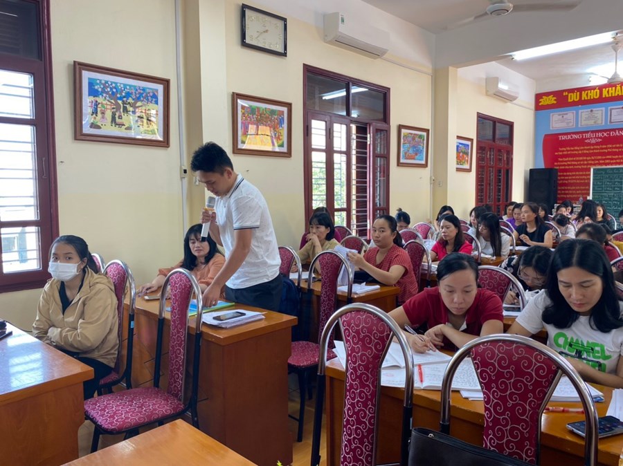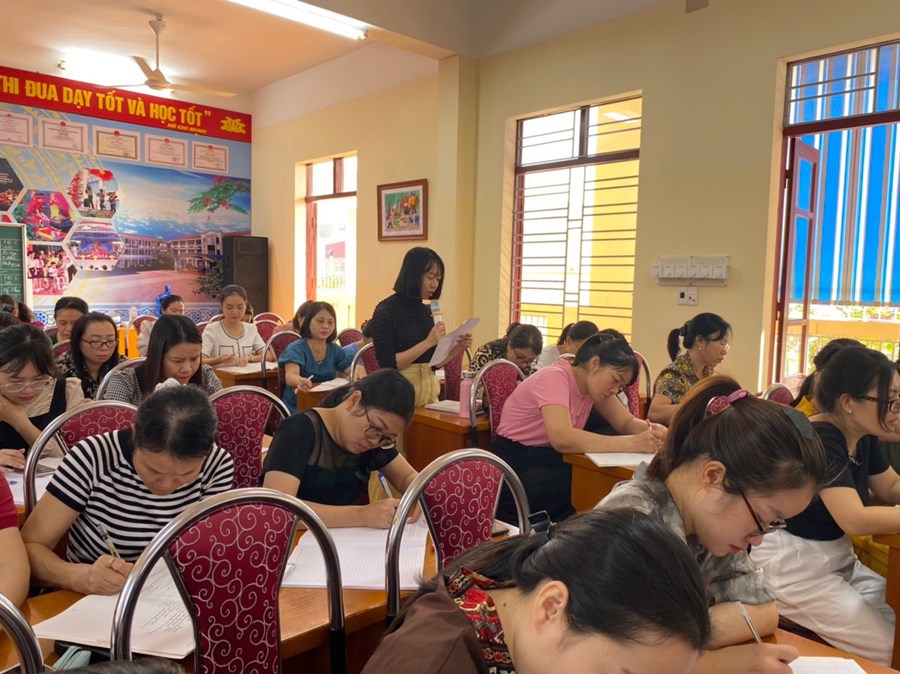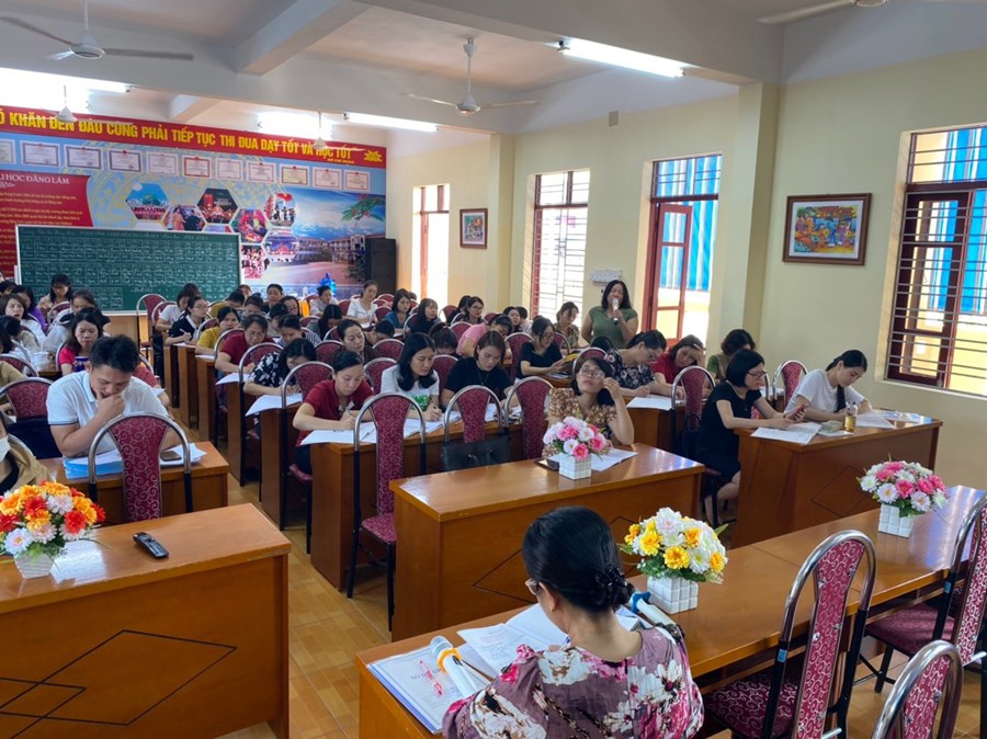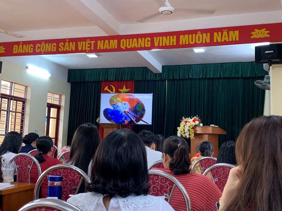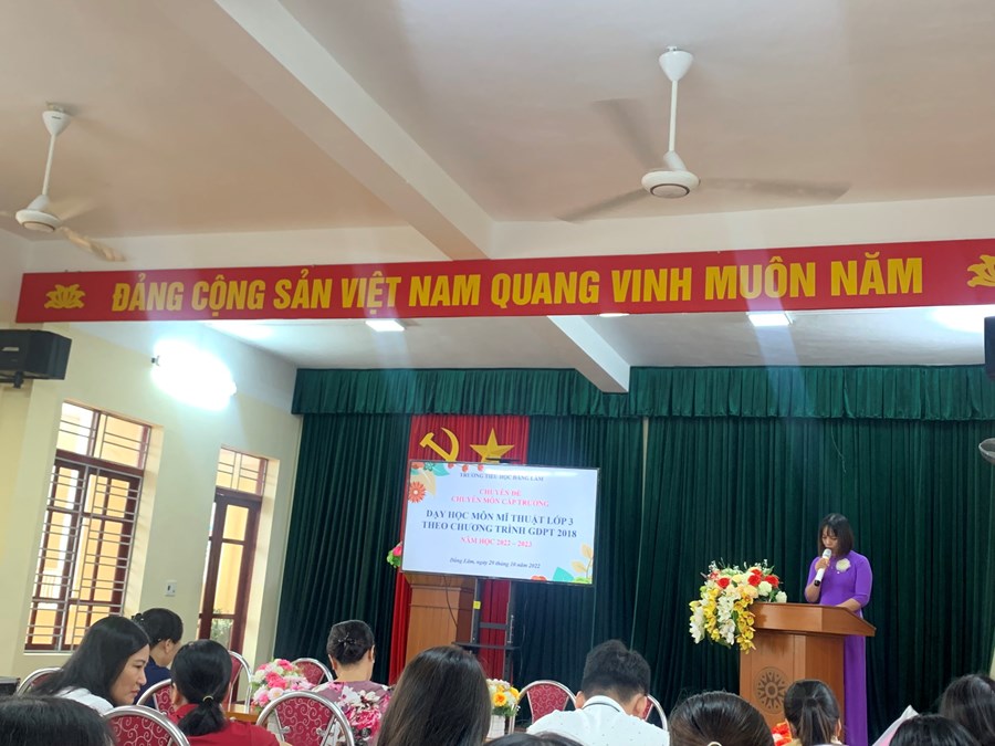 Năm học 2022-2023 là năm học thứ ba thực hiện chương trình Giáo dục phổ thông 2018, để có thêm những phương án sáng tạo, hiệu quả khi tổ chức dạy học phân môn Mĩ thuật lớp 3, sáng ngày 29/10/2022 thực hiện Kế hoạch giáo dục nhà trường; Kế hoạch tháng 10 sinh hoạt chuyên môn cấp trường, Trường Tiểu học Đằng Lâm đã tổ chức chuyên đề cấp trường: “Dạy học môn Mĩ thuật lớp 3 theo chương trình GDPT 2018” do nhóm Mĩ thuật của tổ Chuyên thực hiện. Về dự Chuyên đề chuyên môn cấp trường hôm nay có các đ/c trong BGH cùng toàn thể giáo viên nhà trường.