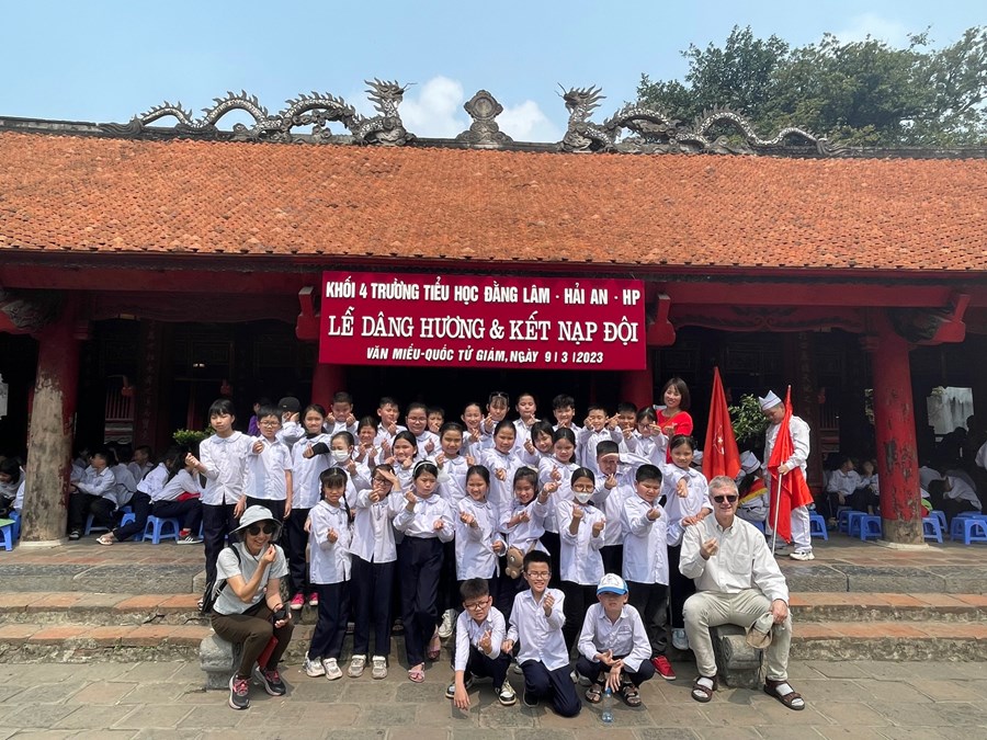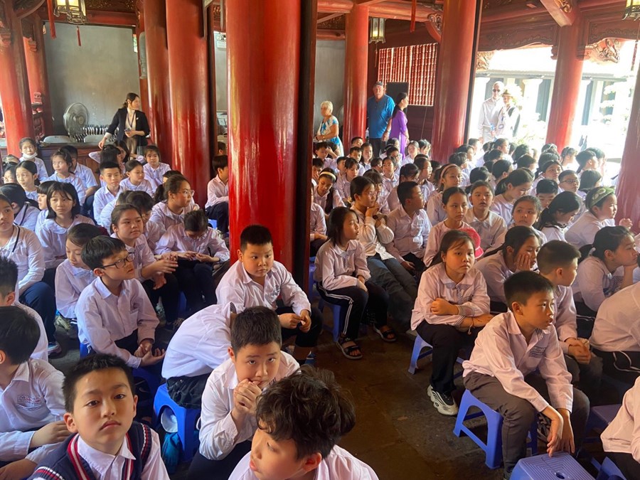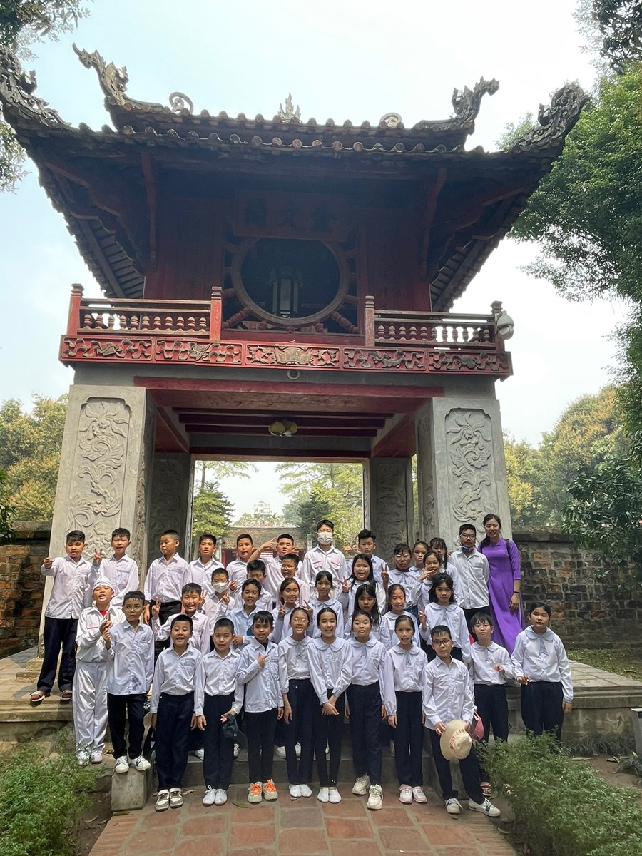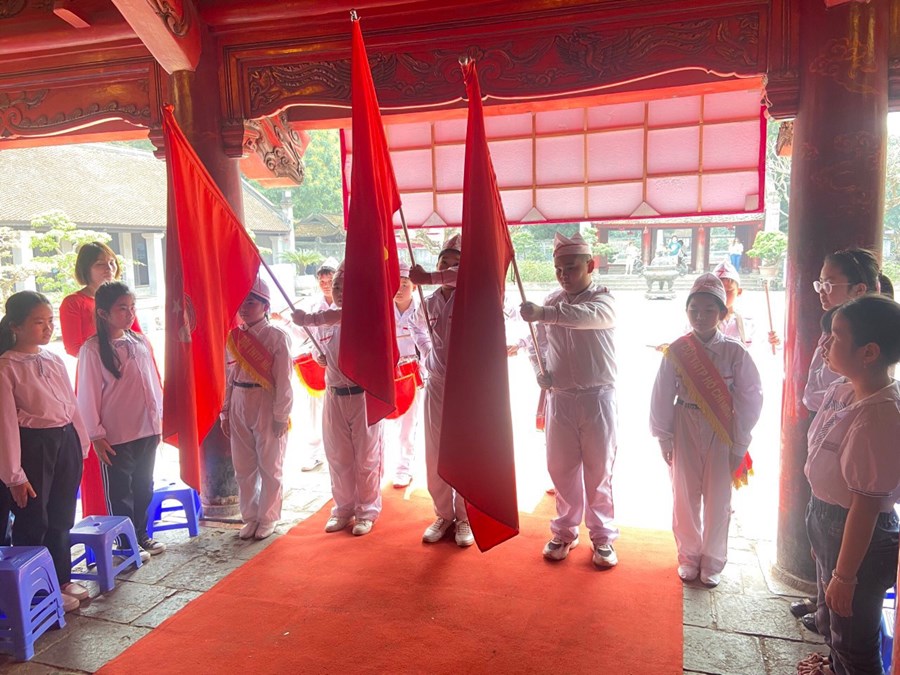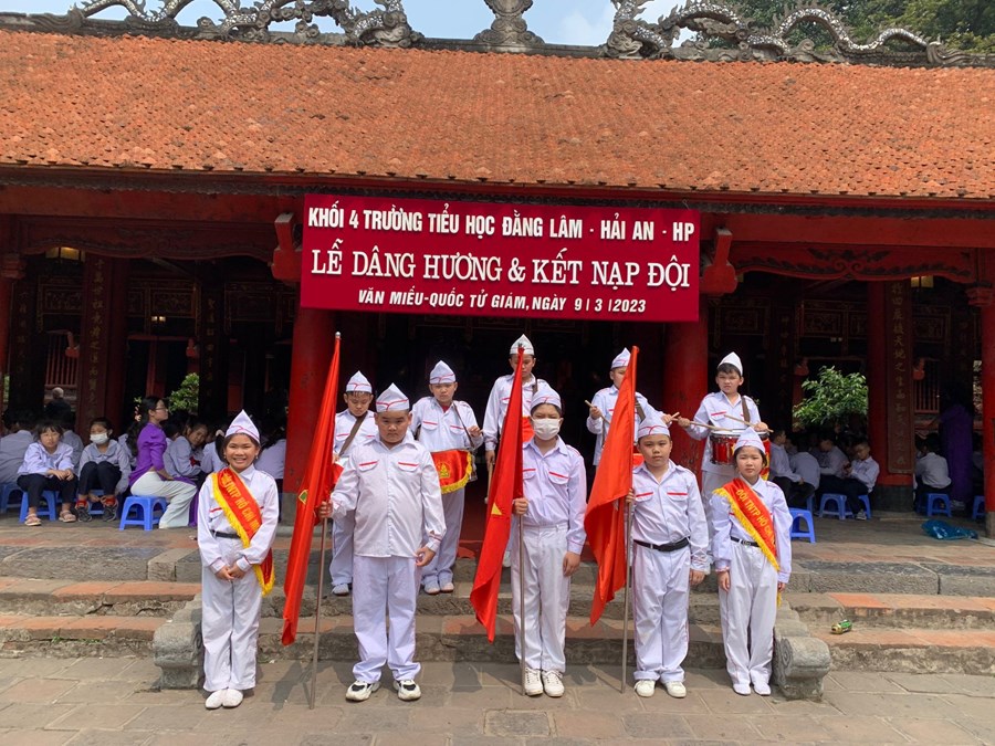 Tiếp sau đó là Lễ dâng hương, báo công và Lễ kết nạp Đội viên tại Văn Miếu Quốc Tử giám khu di tích lịch sử quốc gia đặc biệt. Tại đây các bạn được làm lễ dâng hương, báo công các thành tích đã đạt được trong quá trình học tập và rèn luyện. Trong không khí linh thiêng tại khu du tích lịch sử Văn Miếu, các bạn nhỏ chính thức trở thành Đội viên, được đứng trong hàng ngũ của Đội thiếu niên Tiền phong Hồ Chí Minh. Sau ngày hôm nay, các em sẽ tiếp tục phấn đấu vươn lên không ngừng để trở thành Đội viên tốt, xứng đáng là con ngoan trò giỏi – cháu ngoan Bác Hồ. Giây phút thiêng liêng này sẽ là kỷ niệm đẹp trong tuổi học trò của mỗi bạn học sinh, là dấu mốc quan trọng đánh dấu bước trưởng thành của các em!