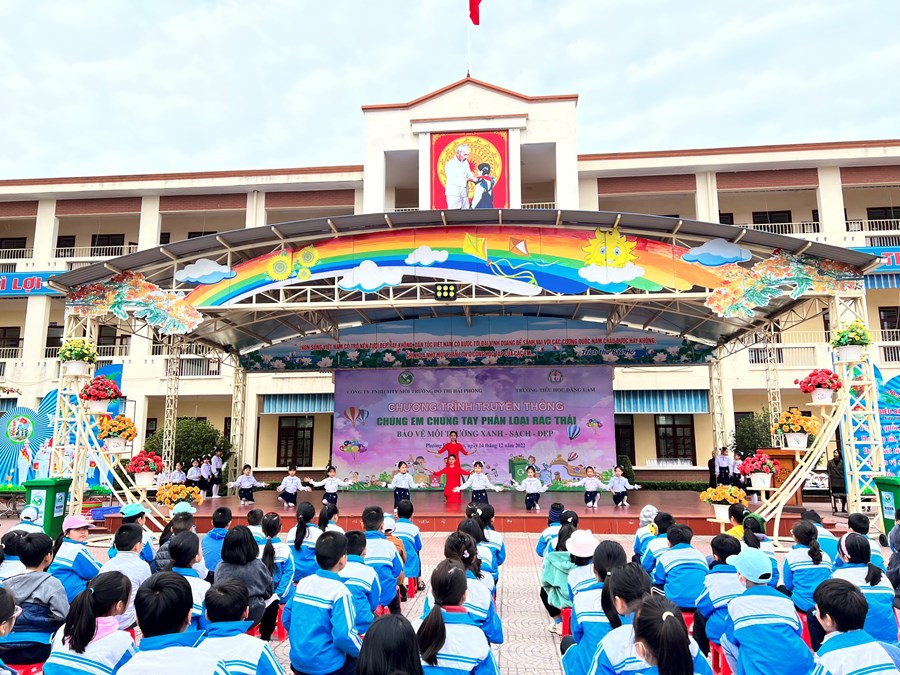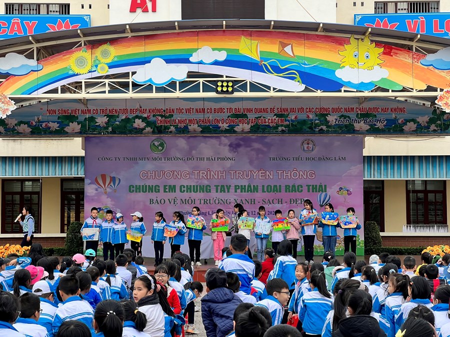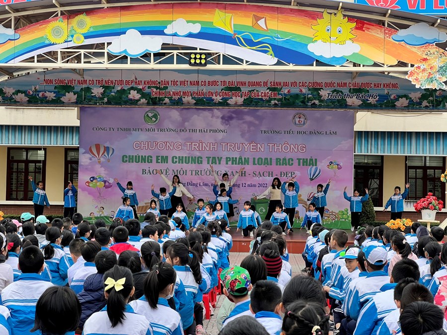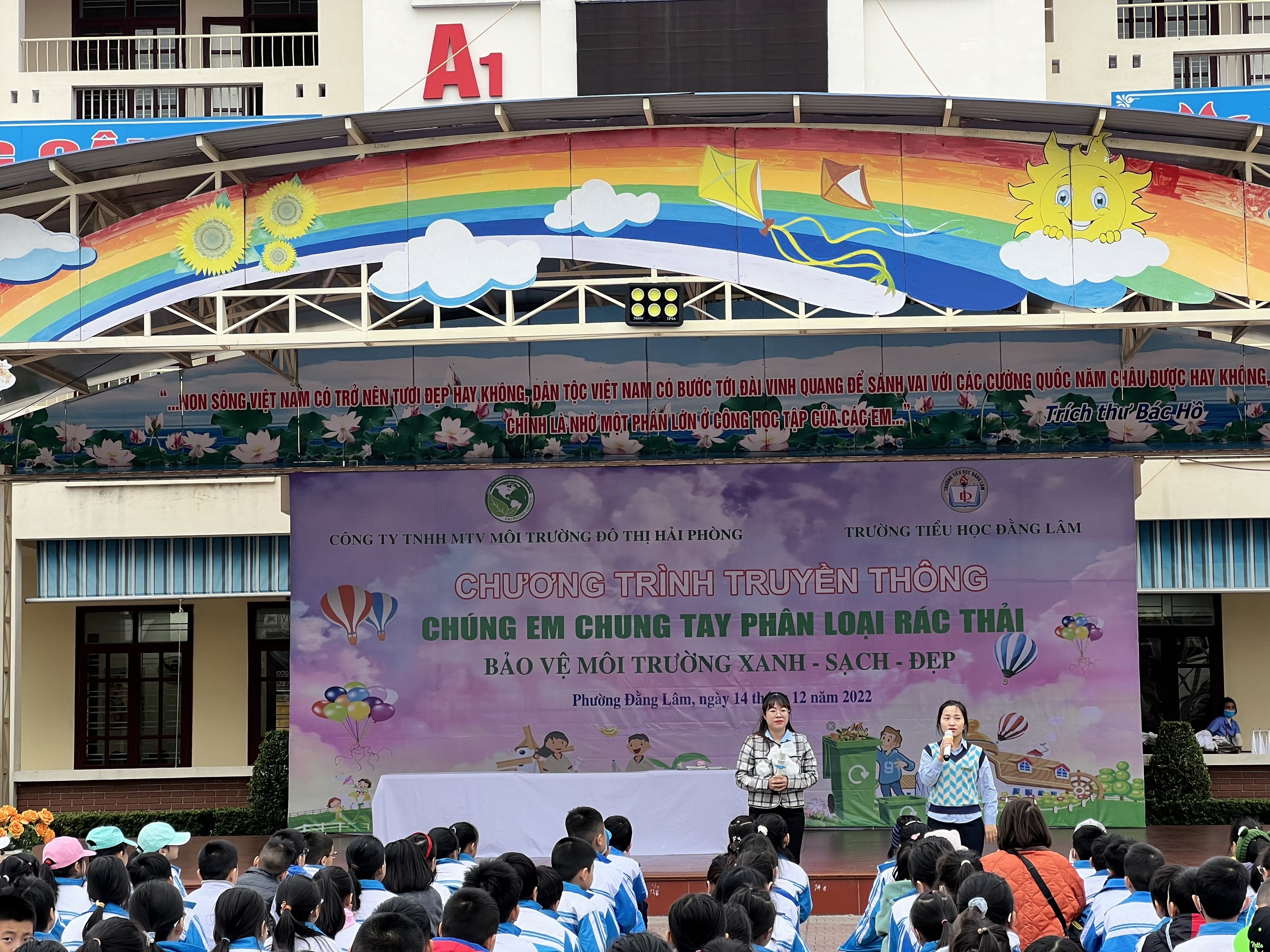 Chương trình CHÚNG EM CHUNG TAY BẢO VỆ MÔI TRƯỜNG do Công ty TNHH MTV Môi trường đô thị Hải phòng cùng trường Tiểu học Đằng Lâm phối hợp tổ chức, đã thành công tốt đẹp và chắc chắn tất cả các em đều sẽ là tuyên truyền viên gửi thông điệp đến tất cả mọi người hãy bảo vệ môi trường bằng hành động phân loại rác tại nguồn.
