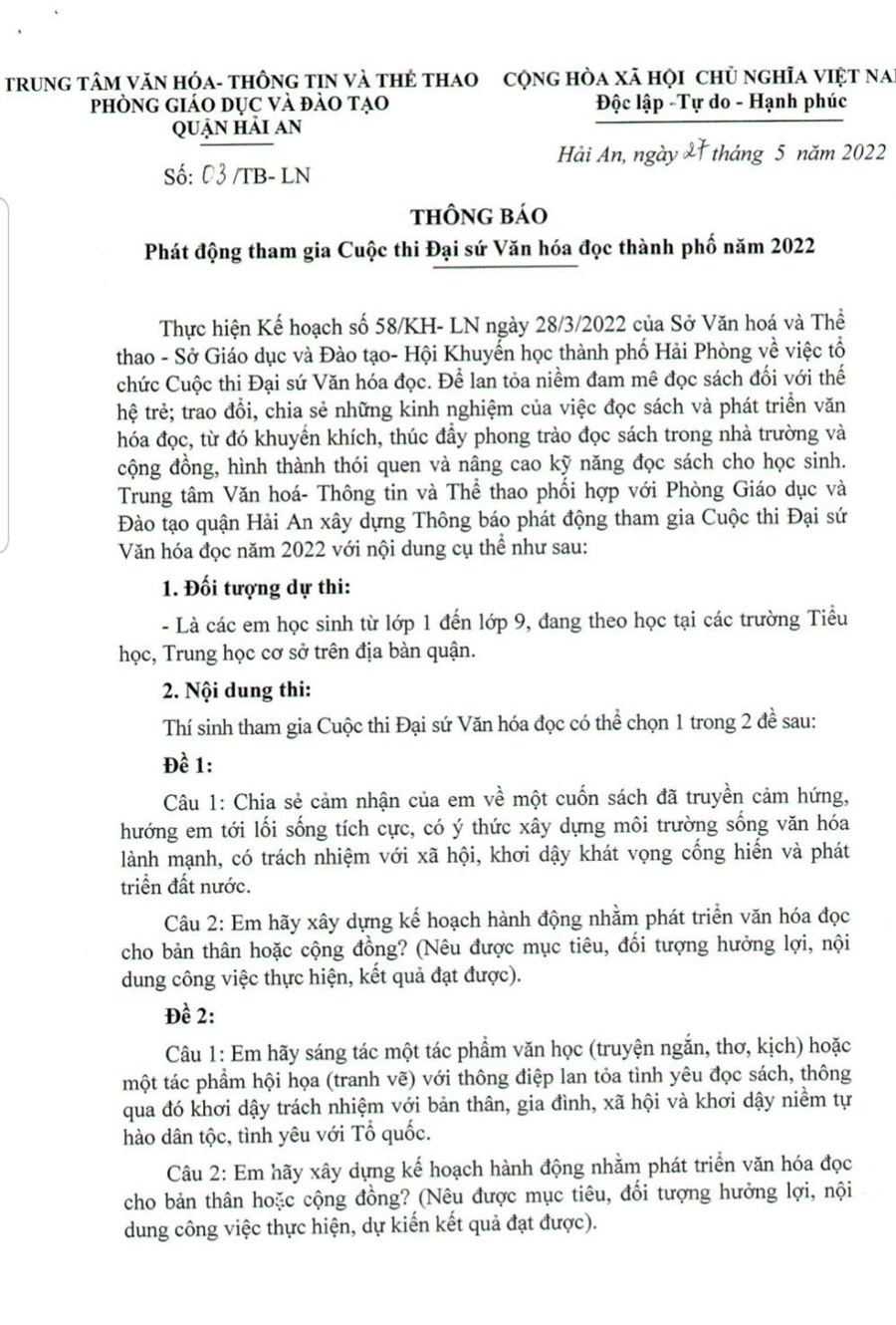 Thực hiện kế hoạch số 58/KH-LN ngày 28/03/2022 của Sở Văn hóa và Thể thao - Sở Giáo dục và Đào tạo - Hội khuyến học thành phố Hải Phòng về việc tổ chức Cuộc thi Đại sứ Văn hóa đọc năm 2022. Trường tiểu học Đằng Lâm đã phát động cuộc thi đến các em học sinh, nhằm mục đích lan tỏa niềm đam mê đọc sách và phát triển văn hóa đọc. Từ đó khuyến khích, thúc đẩy phong trào đọc sách trong nhà trường, trong cộng đồng, hình thành thói quen và nâng cao kỹ năng đọc sách cho học sinh.