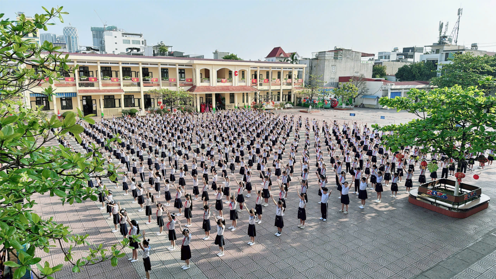 Hòa trong không khí sôi nổi của Ngày hội “Thiếu nhi vui khỏe – Tiến bước lên Đoàn”, Liên đội Trường Tiểu học Đằng Lâm đã tổ chức hoạt động đồng diễn sân trường với sự tham gia nhiệt tình của đông đảo đội viên và học sinh toàn trường. Hoạt động diễn ra trong không khí vui tươi, hào hứng, thể hiện tinh thần năng động và khỏe khoắn của thiếu nhi nhà trường.