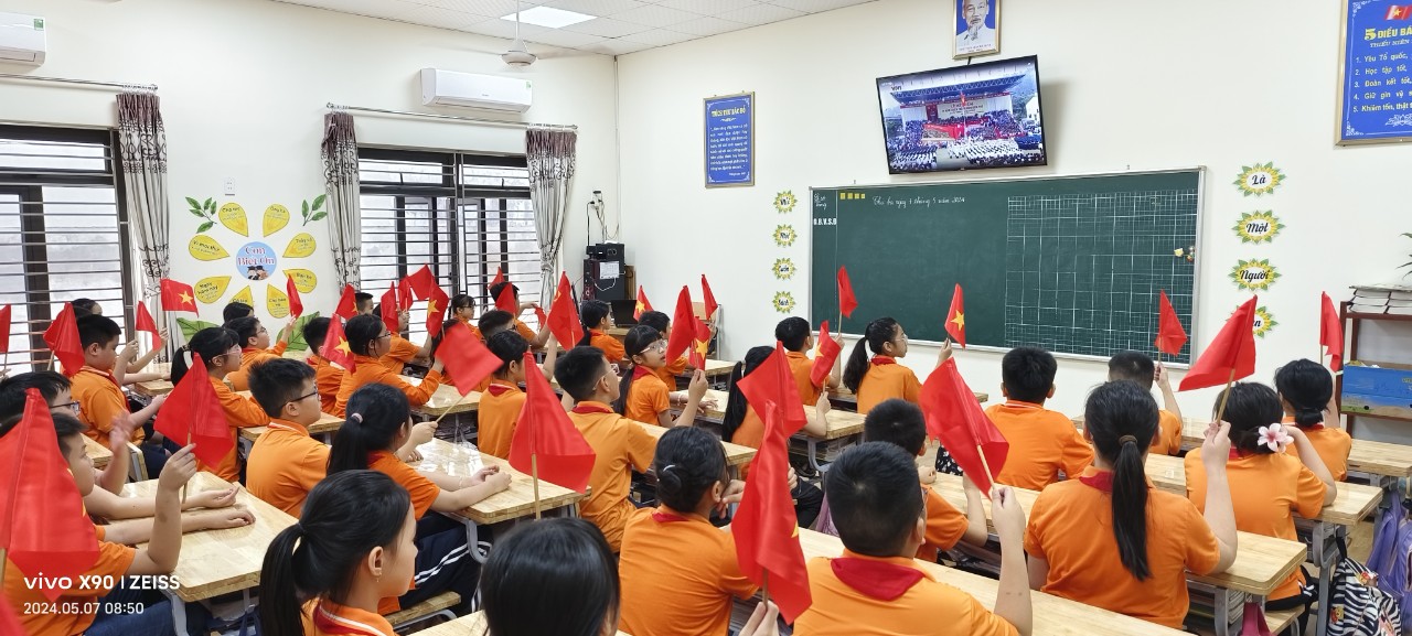 Cách đây 70 năm, ngày 7/5/1954, chiến thắng Điện Biên Phủ đã ghi vào lịch sử đấu tranh chống giặc ngoại xâm của dân tộc ta như một mốc son chói lọi. Đến nay, ý nghĩa và tầm vóc của chiến thắng lịch sử “lừng lẫy Điện Biên, chấn động địa cầu” vẫn còn giữ nguyên giá trị trong sự nghiệp bảo vệ, xây dựng và phát triển đất nước. Hòa chung không khí kỉ niệm 70 năm chiến thắng Điện Biên Phủ lẫy lừng 07/5/1954 - 07/5/2024, Trường Tiểu học Đằng Lâm tổ chức cho thầy và trò toàn trường xem tường thuật trực tiếp Lễ diễu binh, diễu hành chào mừng.