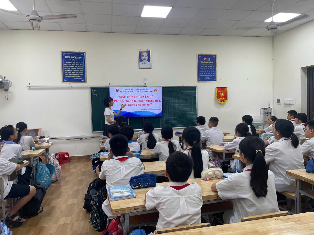 Nhằm trang bị cho các em học sinh những kiến thức, kỹ năng mềm để các em có thể tự bảo vệ mình; thực hiện đợt cao điểm tăng cường phòng chống đuối nước cho trẻ em và học sinh; sáng ngày 14/05/2025, các chi đội của trường Tiểu học Đằng Lâm tổ chức buổi tuyên truyền về phòng chống tai nạn thương tích và đuối nước cho học sinh. Đây là hoạt động được tổ chức có ý nghĩa vô cùng quan trọng, đúng vào dịp các em học sinh chuẩn bị bước vào mùa hè,trang bị kiến thức và kỹ năng cho các em học sinh để có một kỳ nghỉ an toàn, vui vẻ bên gia đình.