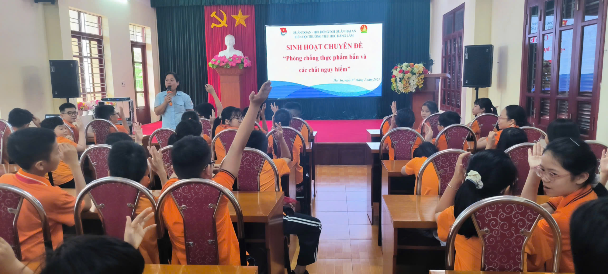 Bảo vệ sức khỏe của bản thân và gia đình khỏi thực phẩm bẩn không phải là việc quá khó khăn nếu chúng ta có đủ kiến thức và ý thức. Vậy nên, sáng ngày 07/02/2025, Liên đội trường Tiểu học Đằng Lâm tổ chức sinh hoạt chuyên đề “Phòng chống thực phẩm bẩn và các chất nguy hiểm” nhằm giúp học sinh hiểu rõ hơn về thực phẩm bẩn, tác hại của nó, cách nhận biết và quan trọng nhất là những biện pháp phòng chống hiệu quả để bảo vệ sức khỏe cho chính mình, gia đình và cộng đồng.
