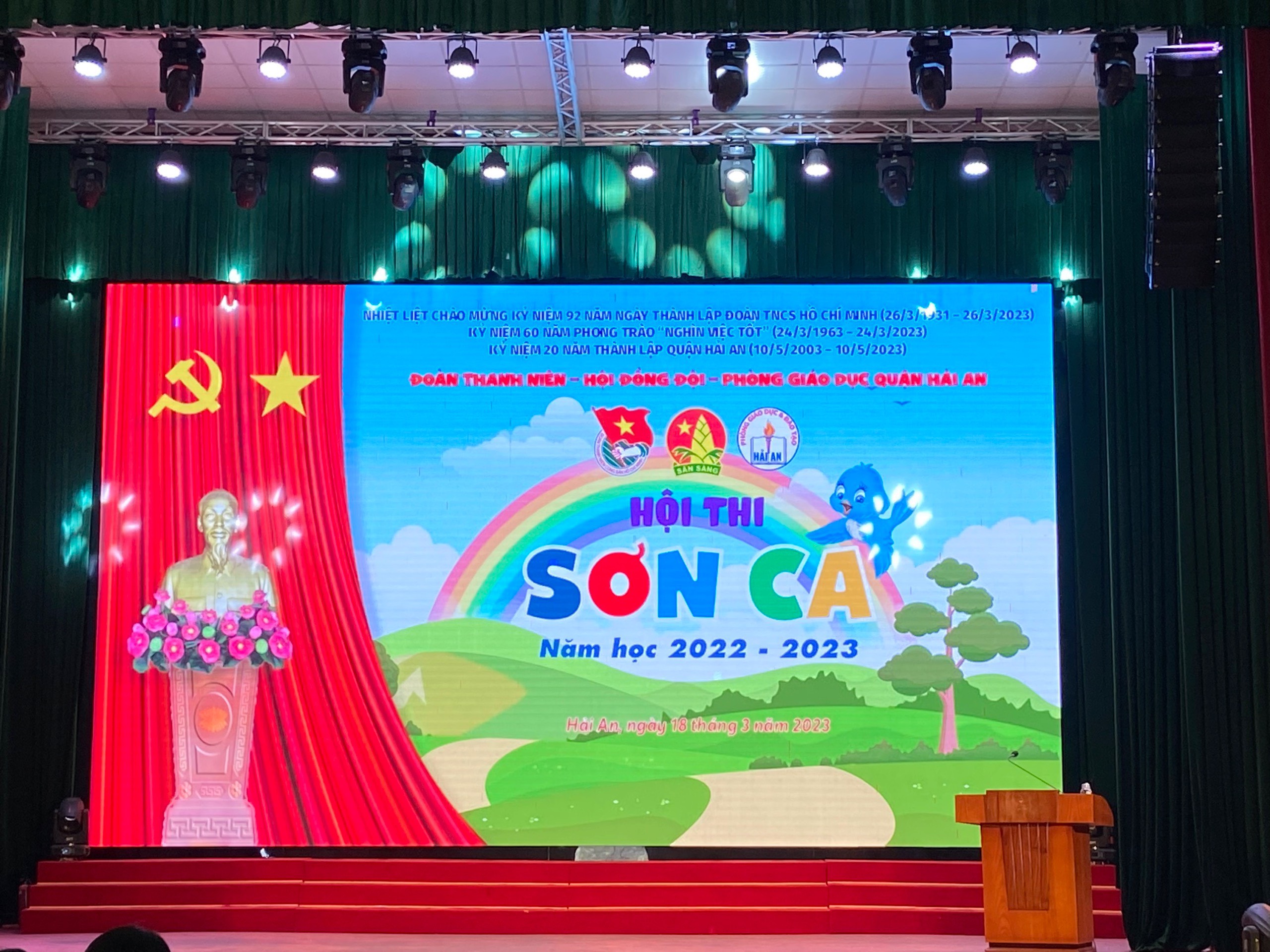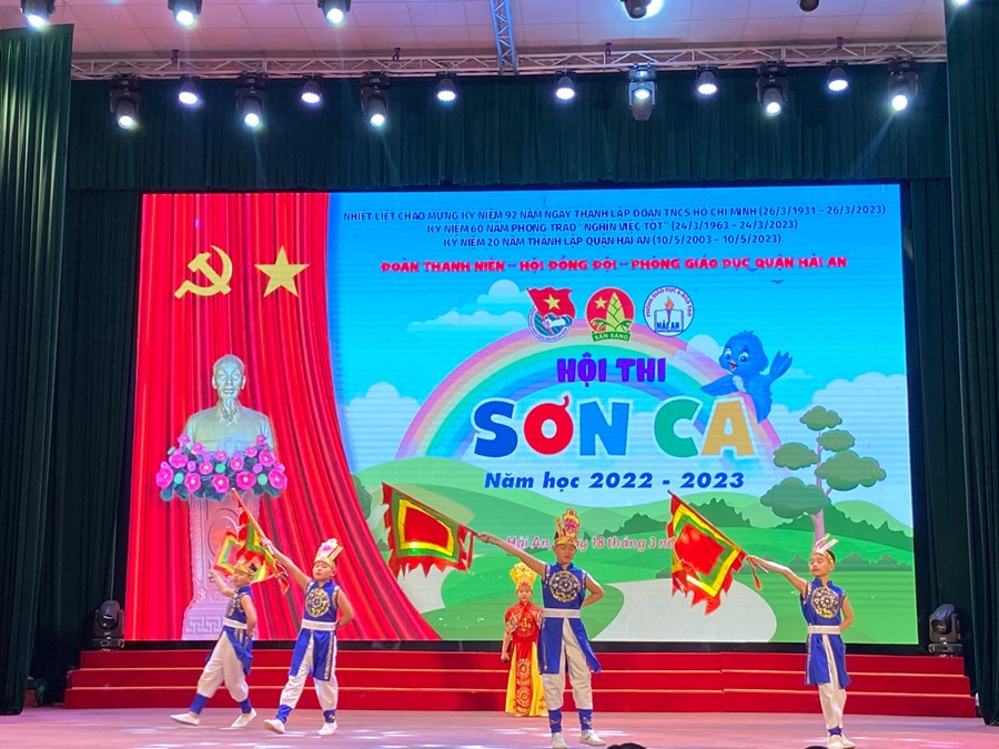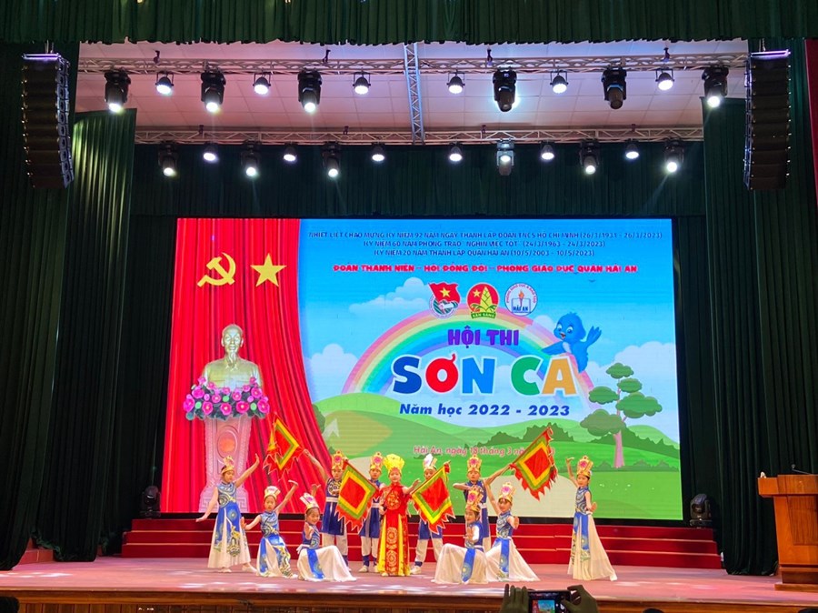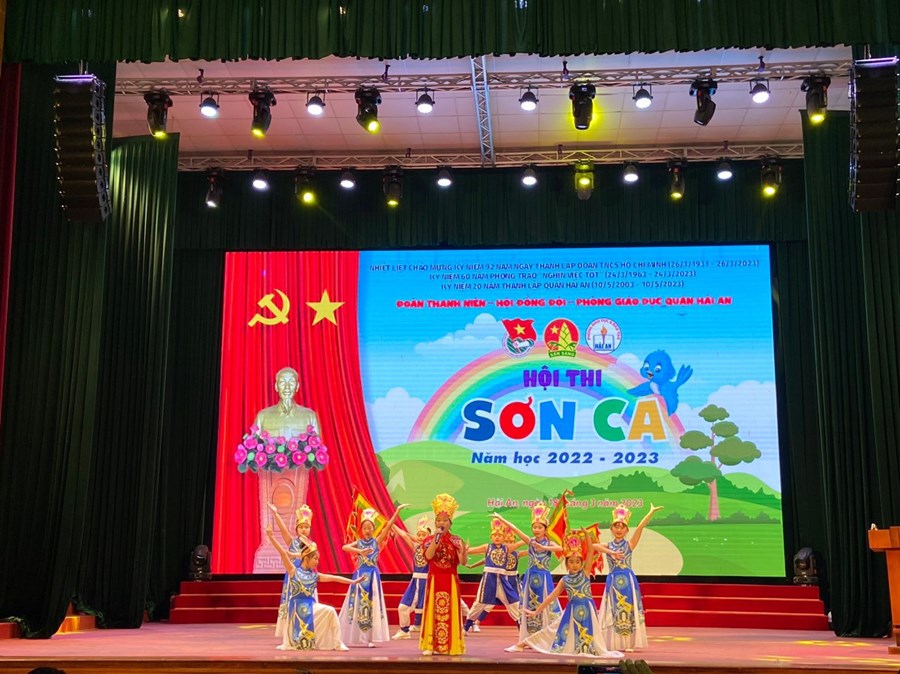 Ngày 18/3/2023 Quận Đoàn Hải An phối hợp với Phòng Giáo dục và Đào tạo Quận tổ chức “Hội thi Sơn ca cấp Quận năm học 2022-2023". Tham gia Hội thi cấp quận có sự góp mặt của 36 thí sinh tiêu biểu được lựa chọn từ các Liên đội trong toàn quận. Các tiết mục dự thi được các nhà trường đầu tư tốt từ việc chọn bài dự thi, hòa âm phối khí, kỹ thuật thanh nhạc, đến phong cách, trang phục, đạo cụ biểu diễn cho các thí sinh.