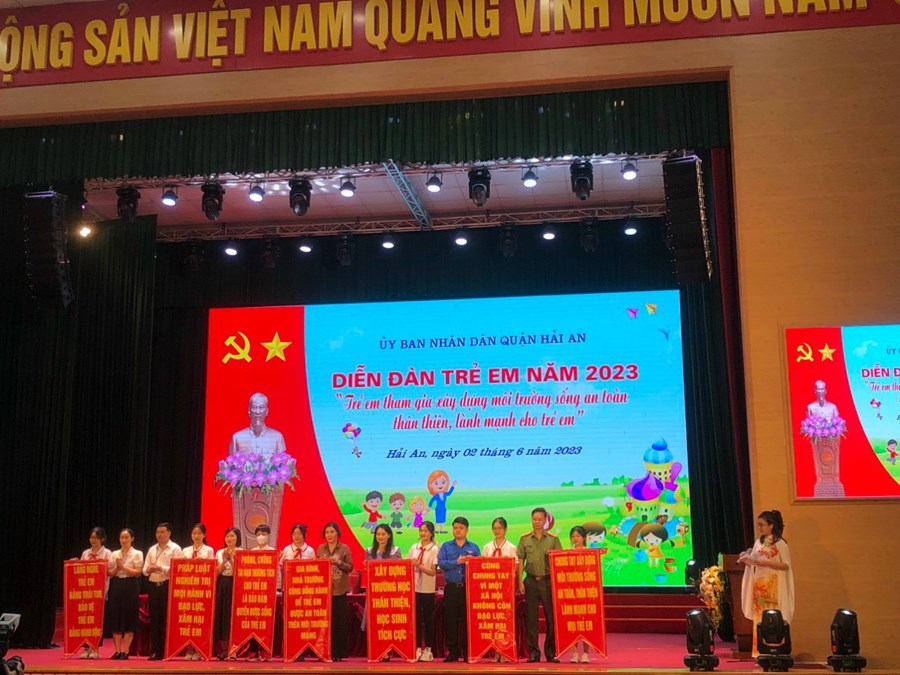 Chiều 2/6, quận Hải An tổ chức phát động Tháng hành động vì trẻ em, khai mạc Hoạt động Hè, Diễn đàn trẻ em năm 2023 trên địa bàn quận, trường Tiểu học Đằng Lâm vinh dự tham gia diễn đàn.