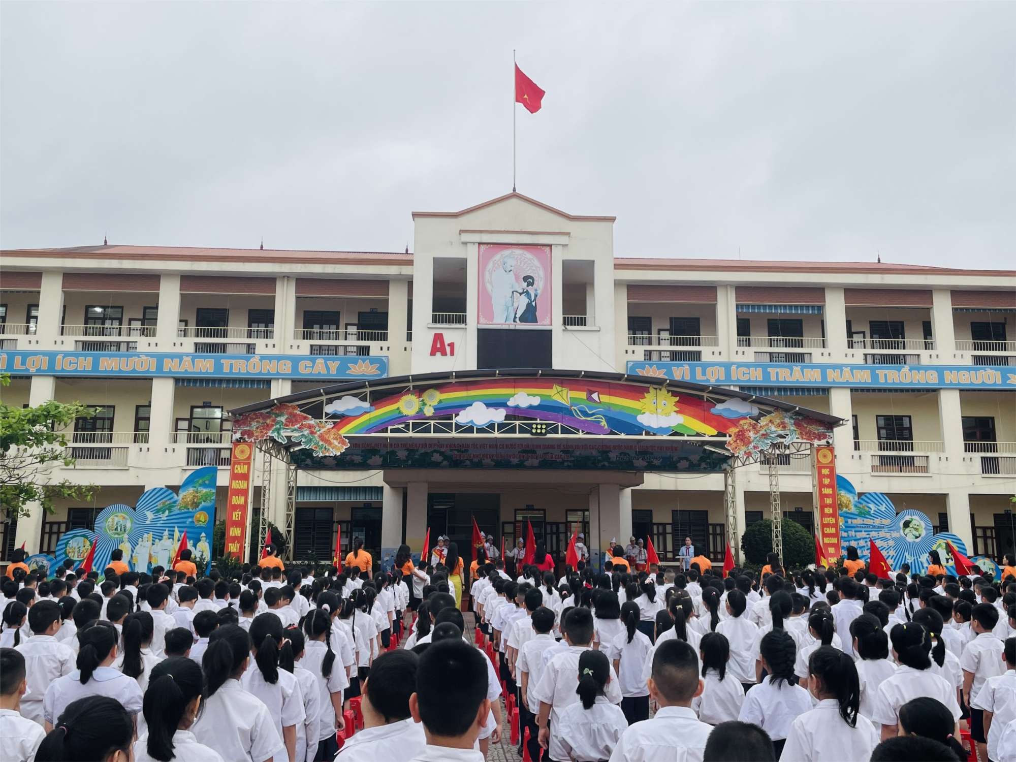Sáng ngày 15/4/2024 Liên đội Tiểu học Đằng Lâm đã long trọng tổ chức Lễ chào cờ tháng 4 nhằm đánh giá, tổng kết công tác tháng 3/2024 và triển khai kế hoạch hoạt động tháng 4/2024. Buổi lễ chào cờ diễn ra trang nghiêm với sự có mặt của Ban giám hiệu, các cô giáo chủ nhiệm và toàn thể học sinh của trường.