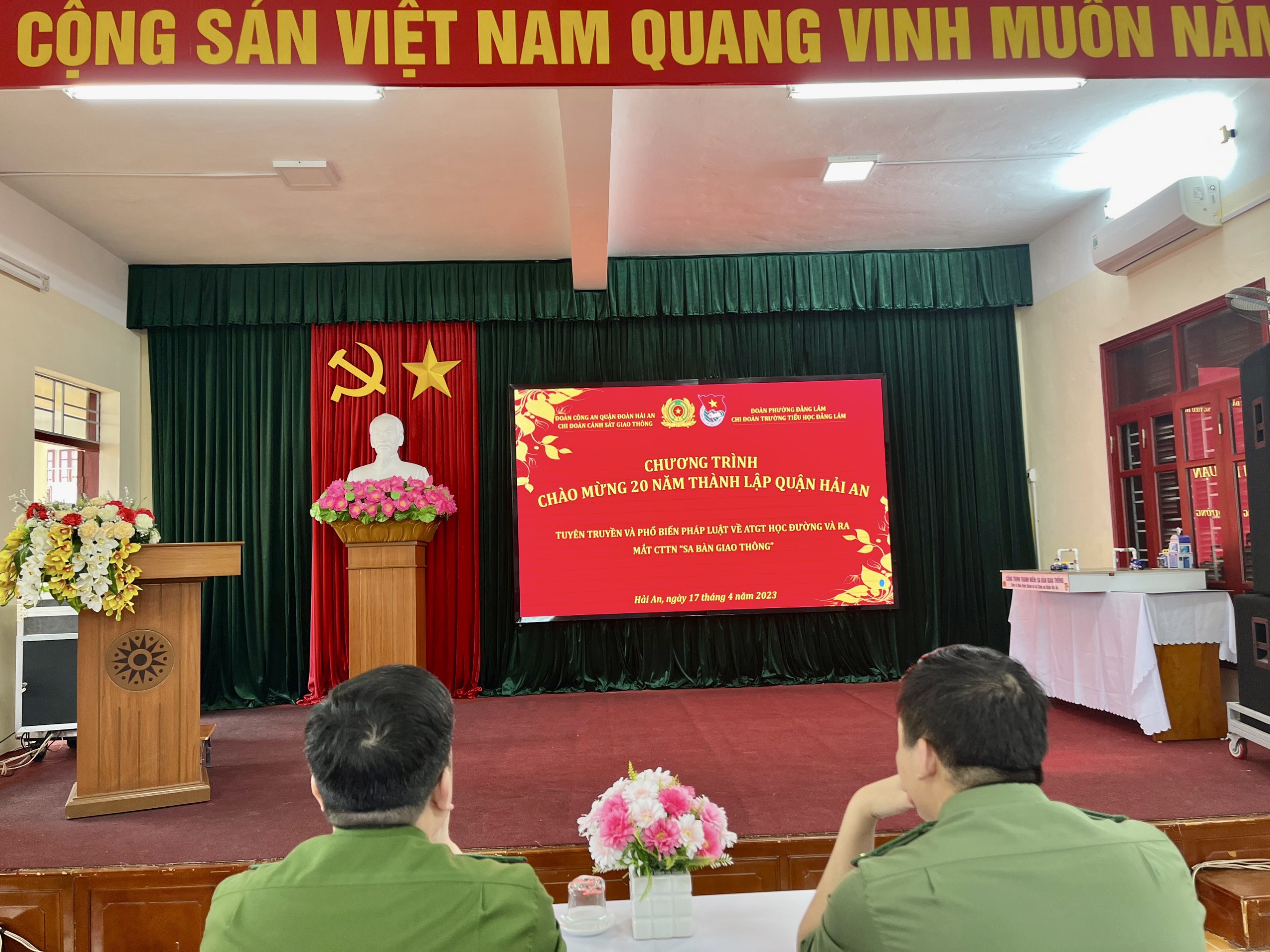 Được sự đồng ý của Đảng ủy, lãnh đạo Công an quận Hải An và Ban giám hiệu trường tiểu học Đằng Lâm. Ngày 17/04/2023, Ban chấp hành Đoàn Công an Quận và Chi đoàn trường Tiểu học Đằng Lâm long trọng tổ chức chương trình: TUYÊN TRUYỀN, PHỔ BIẾN KIẾN THỨC VỀ ATGT HỌC ĐƯỜNG VÀ RA MẮT CÔNG TRÌNH THANH NIÊN “SA BÀN GIAO THÔNG” và trao quà cho các học sinh có hoàn cảnh khó khăn của trường tiểu học Đằng Lâm.