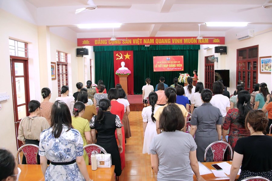 Đến dự với buổi lễ kết nạp Đảng viên mới có các đồng chí đại diện cho Đảng uỷ phường Đằng Lâm, đồng chí Trịnh Thị Thu Huyền - Bí thư Chi bộ, Hiệu trưởng nhà trường cùng 100% các đồng chí Đảng viên trong Chi bộ.