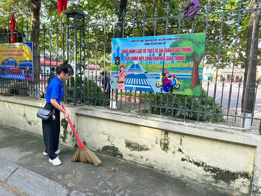 🍀 Sáng chủ nhật ngày 17/09/2023, Chi đoàn thanh niên trường Tiểu học Đằng Lâm ra quân "Ngày Chủ nhật Xanh" nhằm dọn vệ sinh môi trường, xoá biển quảng cáo trái phép,... trên địa bàn của đơn vị.