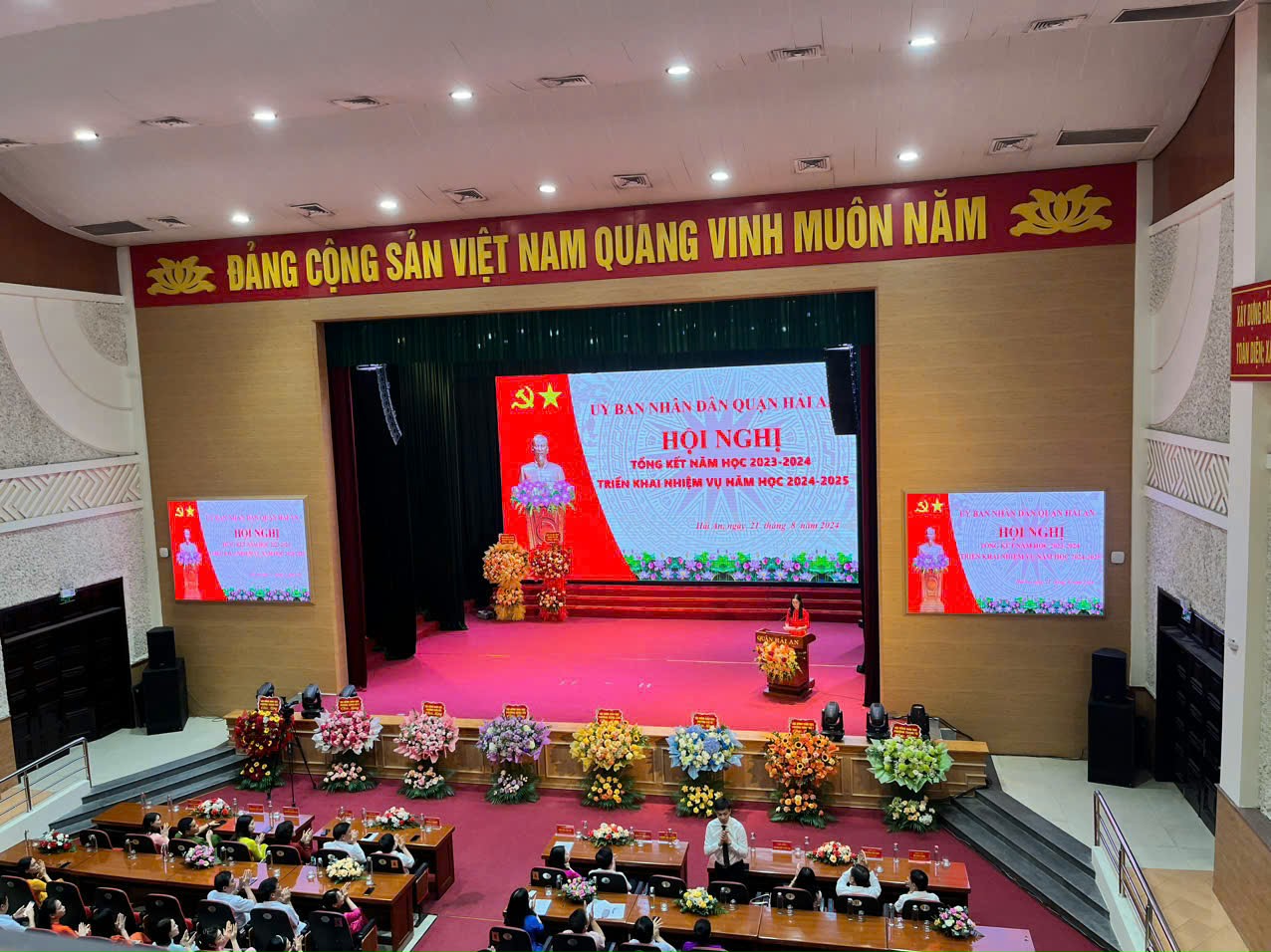 Sáng ngày 21/8, UBND quận Hải An long trọng tổ chức Hội nghị tổng kết năm học 2023-2024; triển khai nhiệm vụ năm học 2024-2025. Tới dự có các đồng chí: Phạm Quốc Hiệu – Phó giám đốc Sở Giáo dục và Đào tạo thành phố, đ/c Nguyễn Thị Thu - Ủy viên Thành ủy, Bí thư Quận ủy, đ/c Dương Đình Ổn - PBTQU, Chủ tịch UBND quận, đ/c Nguyễn Anh Tuấn – PBTTTQU, cùng các đồng chí UVBTVQU, Chủ tịch UBMTTQVN quận, trưởng các phòng, ban, đơn vị thuộc quận, lãnh đạo các phường, các nhà trường, các giáo viên, học sinh được biểu dương, khen thưởng.