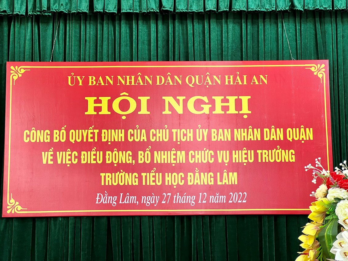 Sáng 27/12 tại trường Tiểu học Đằng Lâm, UBND quận đã tổ chức Hội nghị công bố Quyết định điều động, bổ nhiệm chức vụ Hiệu Trưởng trường Tiểu học Đằng Lâm.