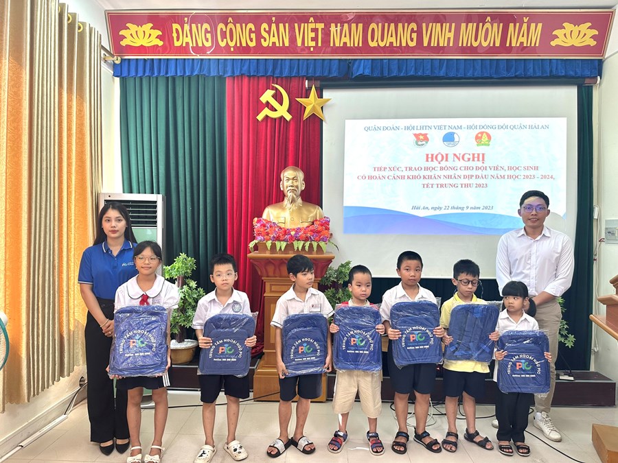 Vào 14h thứ sáu - ngày 22/9/2023 tại hội trường tầng 5 Quận ủy Hải An, Ban Thường vụ Quận đoàn Hải An tổ chức Hội nghị tiếp xúc, trao học bổng cho đội viên, học sinh có hoàn cảnh khó khăn nhân dịp đầu năm học 2023 – 2024 và Tết Trung thu 2023.