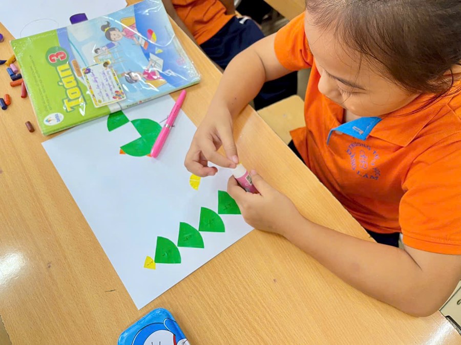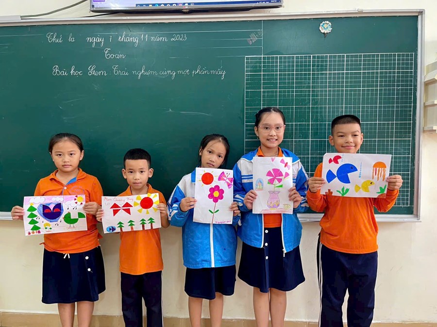 Bằng những kiến thức đã học, học sinh được thực hành tạo sản phẩm từ một phần mấy của một hình. Bài học được áp dụng phương pháp giáo dục STEM. Học sinh tự tin trình bày ý kiến khi thảo luận đề xuất ý tưởng và trưng bày, giới thiệu sản phẩm trước lớp. Có cơ hội hình thành và phát triển năng lực giải quyết vấn đề toán học, năng lực sử dụng công cụ và phương tiện học toán.