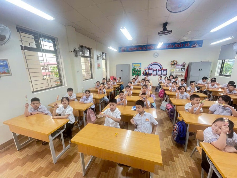 Sáng ngày 28/8 học sinh khối lớp 2, 3, 4 và 5 trường Tiểu học Đằng Lâm hào hứng trở