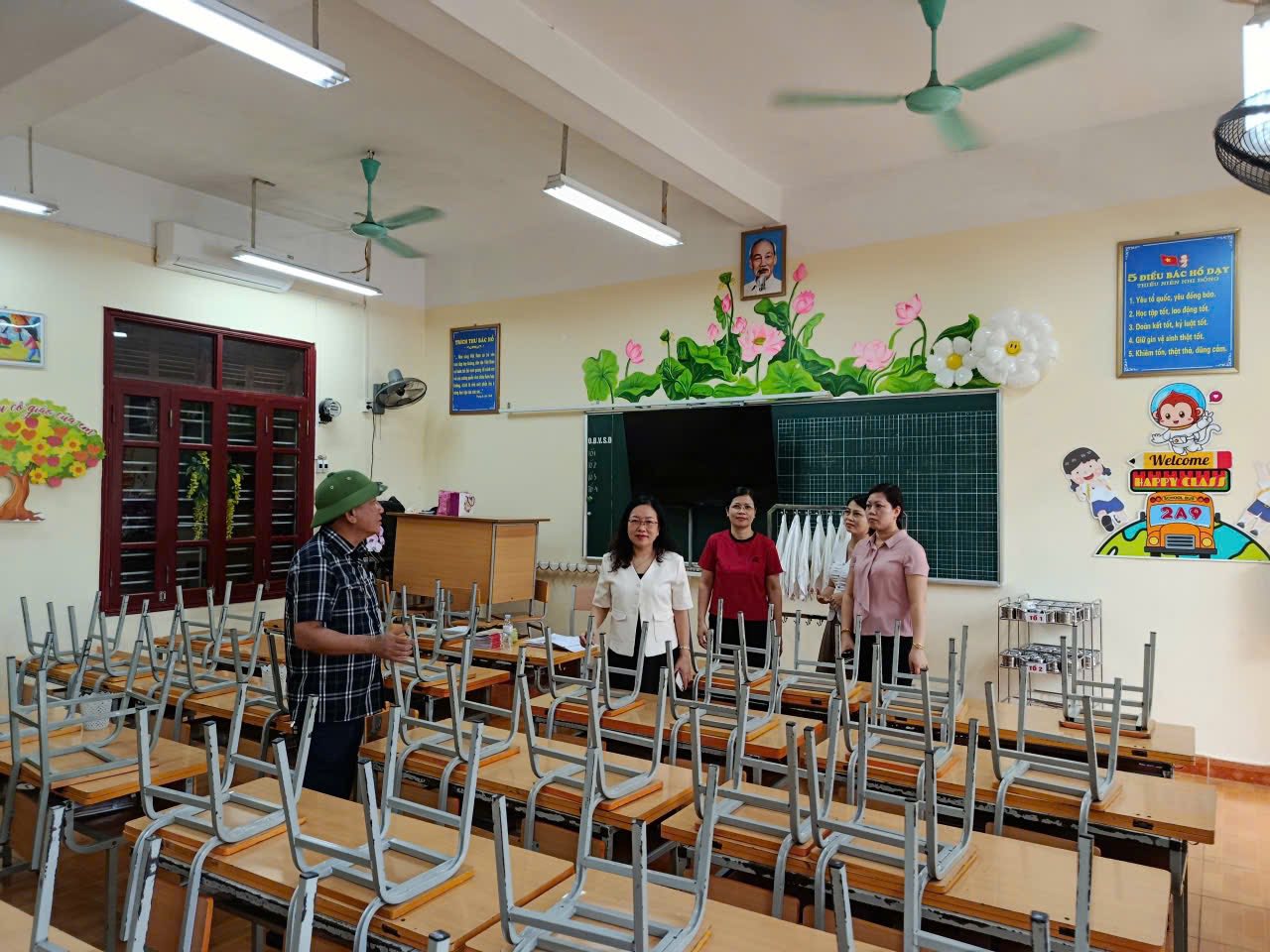 - Kiểm tra và gia cố các phòng học, mái che, cửa sổ, cửa ra vào nhằm đảm bảo an toàn trong điều kiện gió mạnh và mưa lớn. Những điểm có nguy cơ dột, tốc mái đã được sửa chữa kịp thời.