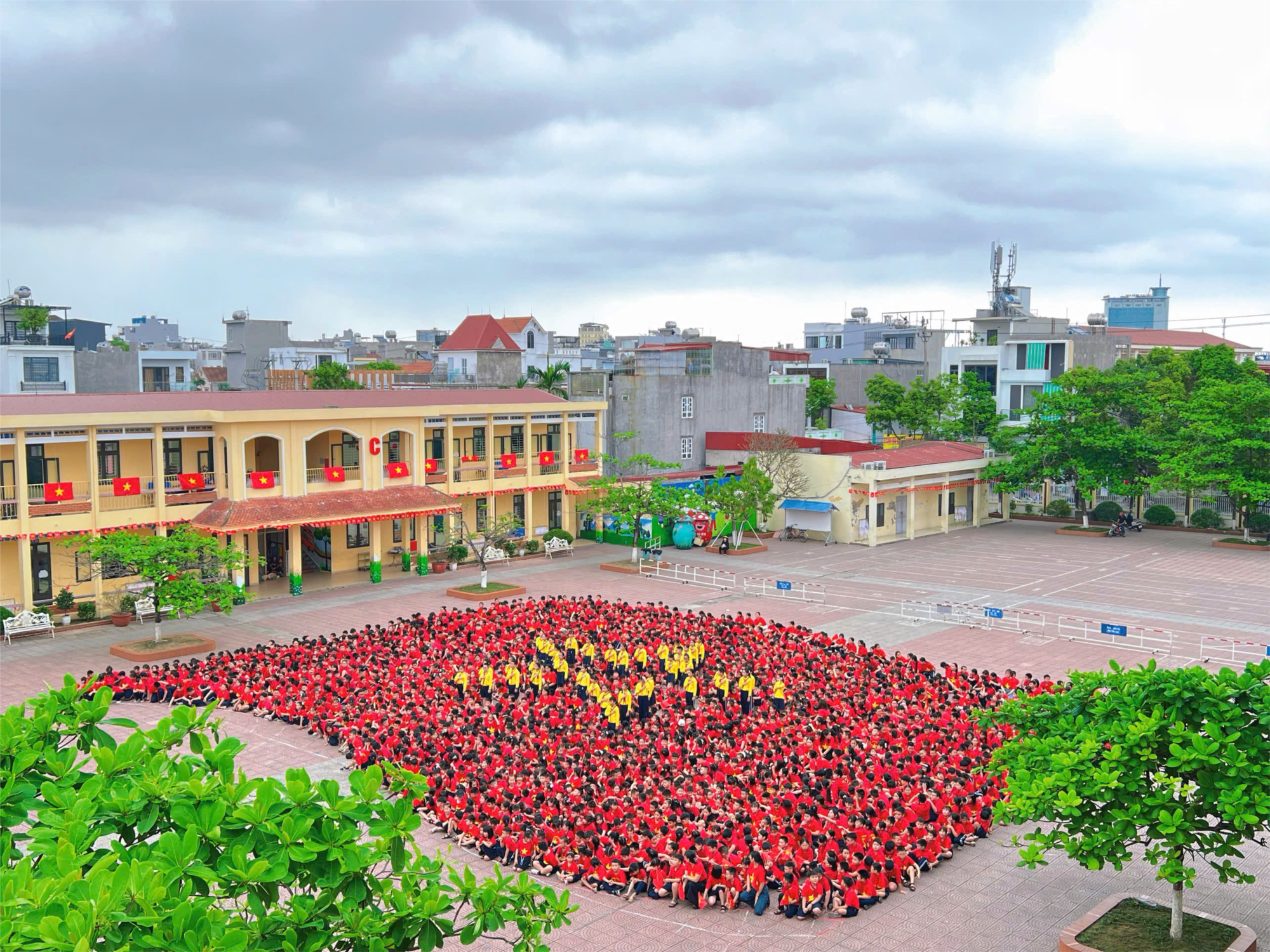 Trong sắc đỏ thiêng liêng của màu cờ Tổ quốc, nơi sân trường đầy nắng, mỗi ánh mắt, mỗi màu áo, mỗi đội hình xếp thành hình đất nước như một nhịp thở chung - nhịp thở của tự hào, của lòng biết ơn, của một thế hệ đang tiếp nối ước mơ vươn cao cùng non sông.