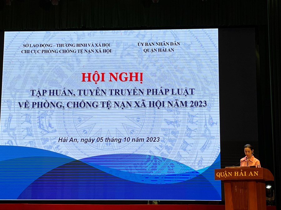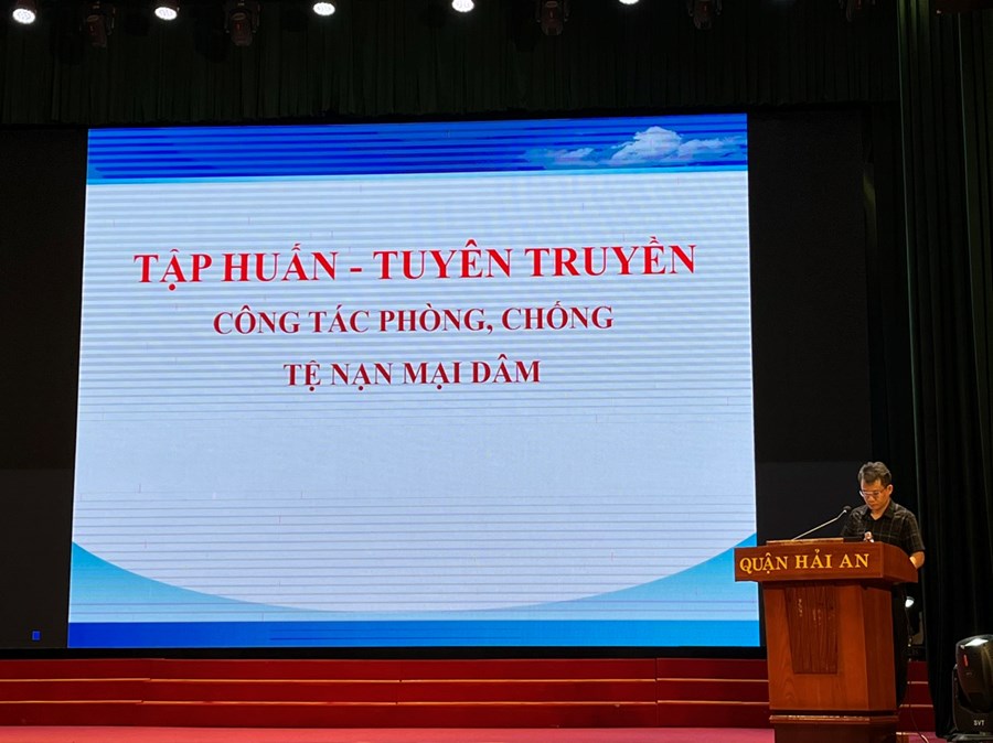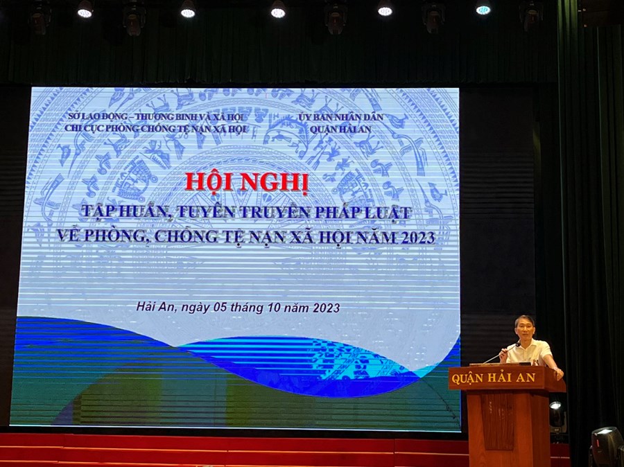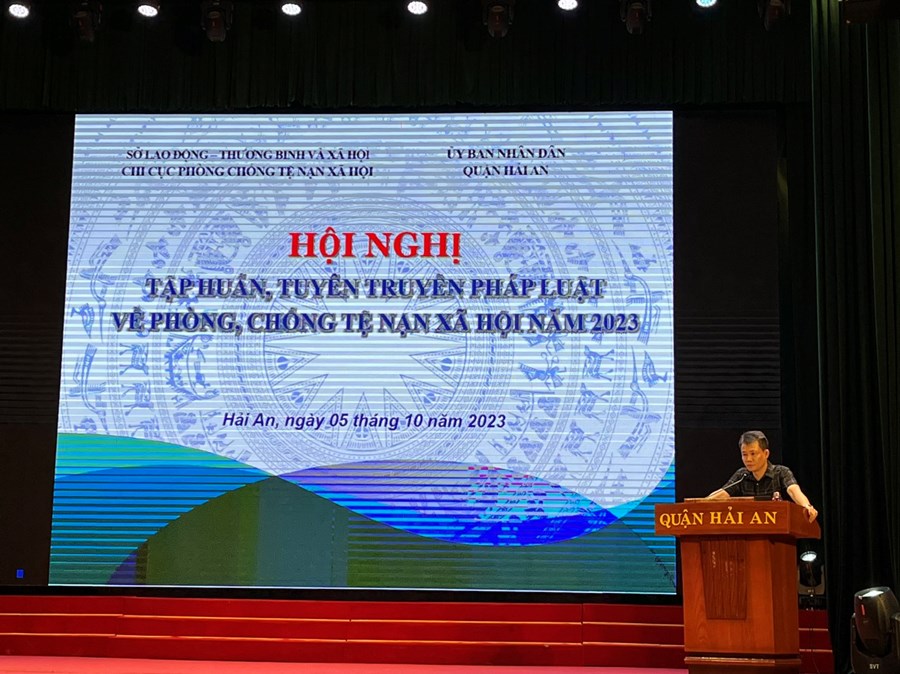Sáng 5/10, Ủy ban nhân dân quận Hải An phối hợp Chi cục phòng, chống tệ nạn xã hội thành phố tổ chức buổi tuyên truyền, phổ biến chính sách pháp luật về phòng, chống mại dâm; lồng ghép tuyên truyền phòng, chống mại dâm với phòng chống ma túy, mua bán người, HIV/AIDS... cho đội ngũ cán bộ, người dân trên địa bàn quận. Tới dự và phát biểu khai mạc có đồng chí Lê Thanh Tùng – Chi cục trưởng, Chi cục Phòng, chống tệ nạn xã hội thành phố. Tham dự hội nghị có hơn 200 đại biểu của quận và cơ sở.