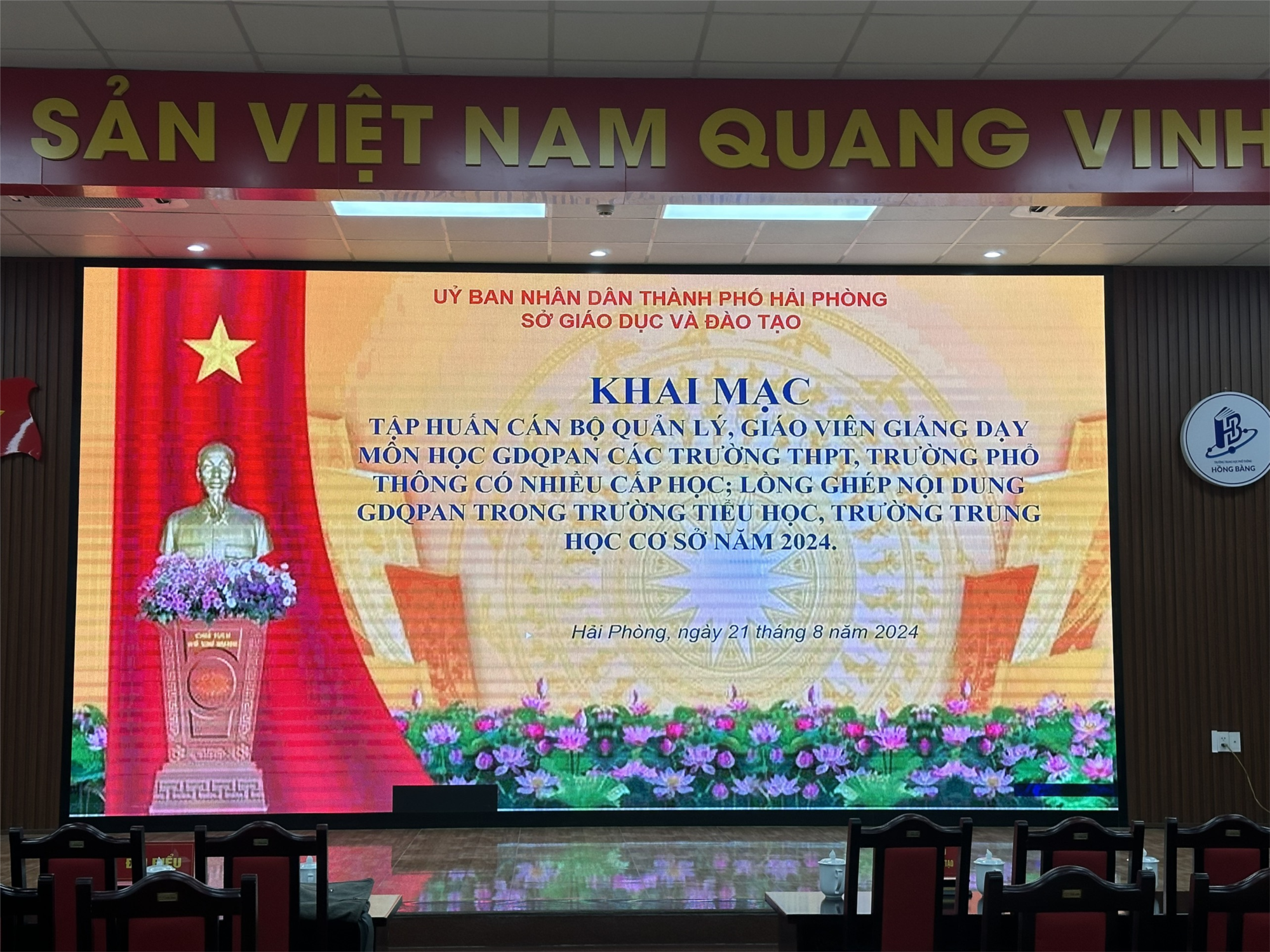 Căn cứ CV số: 2399/SGDĐT-GDTrH của Sở GD&ĐT về triệu tập cán bộ, giáo viên tham gia tập huấn nội dung GDQPAN. Ngày 21/8/2024 tại trường THPT Hồng Bàng đã diễn ra buổi tập huấn nội dung GDQPAN đối với cán bộ quản lý, giáo viên giảng dạy môn GDQPAN các trường THPT, trường phổ thông có nhiều cấp học; lồng ghép nội dung GDQPAN trong trường Tiểu học, trường THCS năm 2024. Cán bộ quản lý và giáo viên trường TH Đằng Lâm đã tham gia tập huấn đầy đủ và nghiêm túc.