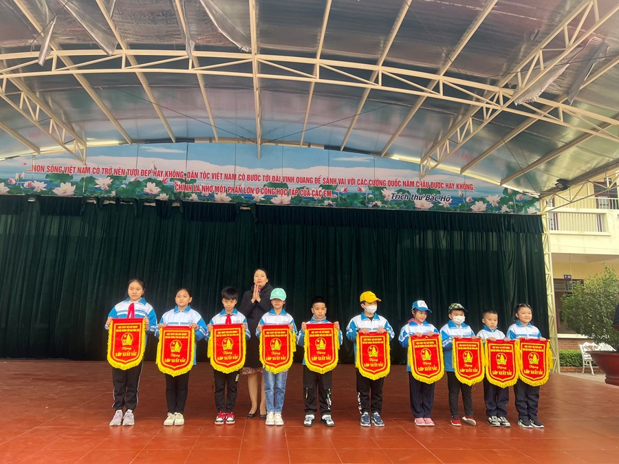 Tham dự Lễ chào cờ, có các thầy trong ban Giám hiệu, toàn thể cán bộ, giáo viên, nhân viên và học sinh toàn trường tham dự. Trong buổi lễ cô Tổng phụ trách đã Sơ kết hoạt động tháng 11/2022 và triển khai các hoạt động trong tháng 12/2022 tới tất cả các em học sinh toàn trường. Đồng thời cô Trịnh Thị Thu Huyền – Bí thư chi bộ - hiệu trưởng nhà trường đã trao cờ cho 11 tập thể lớp đạt danh hiệu xuất sắc trong tháng 11/2022. Bên cạnh đó cô TPT phát động tới học sinh tham gia các hoạt động “ Đền ơn đáp nghĩa” , phong trào “Uống nước nhớ nguồn”, chào mừng ngày thành lập Quân đội nhân dân Việt Nam 22/12. Tiếp tục hưởng ứng phong trào “Đọc - làm theo báo Đội”. Sau đây là một số hỉnh ảnh của lễ chào cờ tháng 12/2022: