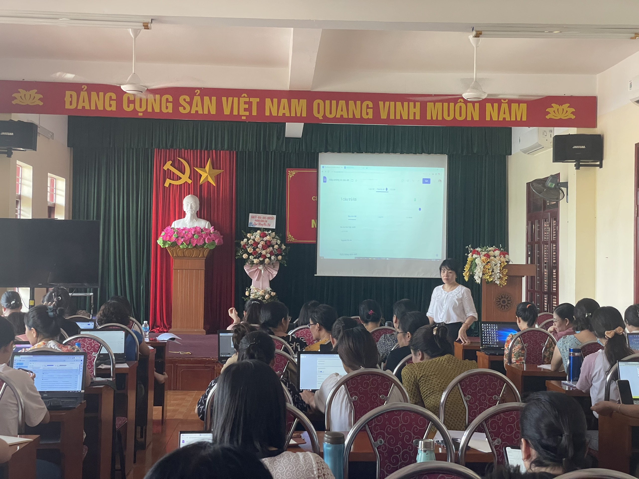 Ứng dụng Công nghệ thông tin trong giảng dạy là điều tất yếu, ý thức điều đó, chiều ngày 18/08/2022 trường Tiểu học Đằng Lâm tổ chức tập huấn Chương trình bồi dưỡng Công nghệ thông tin cho giáo viên. Nội dung buổi tập huấn tập trung vào: "Khai thác các ứng dụng trên nền tảng Google trong việc quản lý và dạy học trực tuyến": Google Drive, Google Docs (Xử lý văn bản), Google Sheets (bảng tính), Google Slides (bài thuyết trình), Google Form (biểu mẫu). Giáo viên toàn trường tham gia đầy đủ, nghiêm túc với tinh thần học hỏi, tích lũy kiến thức để có thể vận dụng thật tốt trong công tác giảng dạy.