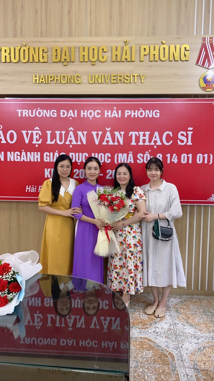 Tập thể nhà trường chúc mừng các đồng chí đã hoàn thành một hành trình trên bước đường học tập tích lũy kiến thức, kỹ năng. Bên cạnh việc học tập, các cô giáo luôn hoàn thành tốt các nhiệm vụ chuyên môn tại đơn vị công tác. Chúc cho những chặng hành trình tiếp theo của 06 tân Thạc sĩ sẽ thật thành công.