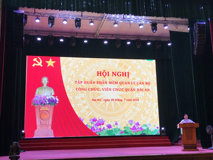 Thực hiện Quyết định số 2392/QĐ-UBND, ngày 24/8/2021 của UBND thành phố Hải Phòng về việc phê duyệt Đề cương và dự toán chi tiết hạng mục “Triển khai phần mềm quản lý cán bộ, công chức, viên chức thành phố Hải Phòng”; Công văn số 1104/SNV-CCVC ngày 03/6/2022 của Sở Nội vụ thành phố “V/v triển khai phần mềm quản lý cán bộ, công chức, viên chức thành phố Hải Phòng”, UBND quận Hải An tổ chức tập huấn sử dụng phần mềm quản lý cán bộ, công chức, viên chức quận Hải An năm 2022 vào ngày 26, 27/7/2022 tại Hội trường trung tâm quận.
